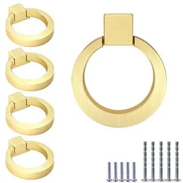 IAFVKAI 5 Pack Cabinet Knobs Zinc Alloy Drawer Pull Brushed Brass Round Cabinet Kitchen Handle Gold Door Drawer Knob for Cupboard Wardrobe Hardware