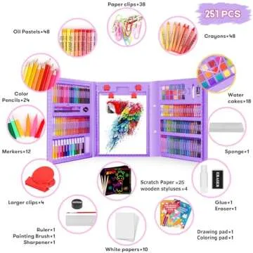 The art kit includes an impressive collection of 251 high-quality art supplies. Your young artist will discover oil pastels, crayons, colored pencils, watercolor cakes, and more—all safely packaged for easy access and organization. Each item is made from non-toxic materials, ensuring a safe creative experience for kids and for peace of mind for parents. Designed specifically for little hands, this kit encourages exploration and self-expression.