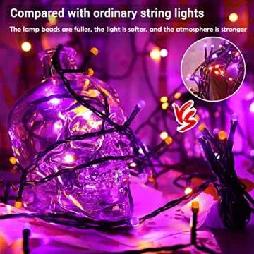 iBaycon 600 LED Orange and Purple Halloween Lights, 196.5ft Round Bead Waterproof String Lights with 8 Modes & Timer for Indoor Outdoor Halloween Decorations(Green Wire, Orange+Purple)