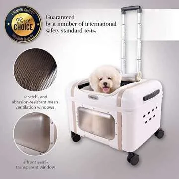 ibiyaya Lavada Pet Transport Luggage Pet Carrier with Wheels, Up to 35lbs, White Mocha - Sturdy Dog and Cat Carrying Case with Telescopic Handle, Swivel Wheels - Small and Medium Rolling Dog Carriers