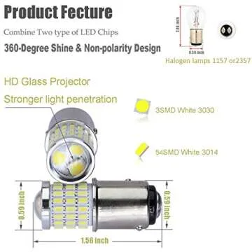 iBrightstar 9-30V Super Bright Low Power 1157 2057 2357 7528 BAY15D LED Bulbs with Projector Replacement for Back Up Reverse Lights or Tail Brake Lights, Xenon White(6500K)