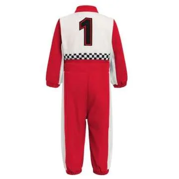 Show moreUnleash the speedster in your little one with the **IBTOM CASTLE Baby Race Car Driver Outfit**. This charming outfit is a must-have for your child's 1st or 2nd birthday celebration and Halloween festivities. Featuring a stylish long-sleeve design, this speed racing suit is crafted from breathable materials, ensuring maximum comfort while they zip around. The bold red color adorned with classic checkered details adds an exciting touch, making it perfect for aspiring race car drivers. A hidden front zipper not only adds convenience but also keeps your baby cozy against chilly winds, making it ideal for outdoor adventures.