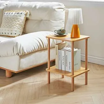 IBUYKE 2-Tier Side Table, Solid Wood Tall End Table with Storage Shelves, Nightstand Bedside Table for Living Room Bedroom Office, No-Tool Assembly, Natural UWST002N