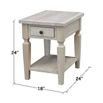 Show moreIntroducing the IC International Concepts Vista End Table, your perfect choice for an unfinished accent piece that blends gracefully into any decor. Crafted from solid hardwood, this table stands out for its robust design and exceptional durability, making it an ideal addition to your living space. With its charming unfinished aesthetic, it invites creativity, allowing you to customize it with your stain or paint choice. This accent table is perfect for displaying decorative items, serving as a nightstand, or enhancing the functionality of your space without compromising style.