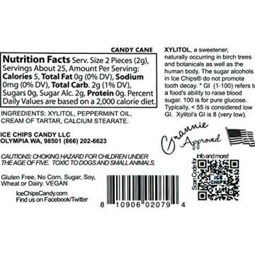 Show moreDiscover the delightful world of ICE CHIPS Xylitol Candy Tins, a sweet treat that prioritizes both taste and health. Crafted using USA Birchwood Xylitol, these refreshing candies are specifically formulated to cater to the needs of diabetics and health-conscious individuals. Unlike traditional sweets, ICE CHIPS won't impact insulin levels, making them an ideal guilt-free indulgence. Each 1.76 oz tin comes with a stylish ICE CHIPS BAND, making it a perfect gift or personal treat. Enjoy the unique flavor of Candy Cane, adding a festive twist to your candy experience.