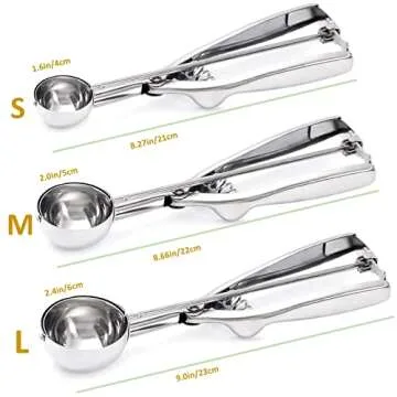 Ice Cream Scoop, 3Pcs Cookie Scoop Set, 18/8 Stainless Steel Cookie Dough Scoop, Cookie Scoops for Baking Set of 3, Ice Cream Scooper with Trigger Release, Cookie Scooper for Baking, Cupcake Scoop