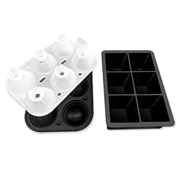 Show moreIntroducing the Ice Cube Molds 2 Pack, the ideal silicone ice ball maker that elevates your cocktails and whiskey drinks to a whole new level of sophistication. Crafted from high-quality silicone, these molds are designed to create perfectly shaped large square and round ice cubes that melt slowly, ensuring your drink remains at the perfect temperature without diluting its rich flavors. Whether you’re a professional bartender or just someone who enjoys a fine drink at home, these molds will surely impress your guests and enhance your drinking experience.