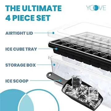 Ice Cube Tray With Lid & Bin | BPA Free Silicone Ice Cube Tray With Lid, Container & Scoop | Stackable 36 Nugget Ice Tray for Freezer With Easy Release | Large Ice Mold Maker for Cocktails & Whisky
