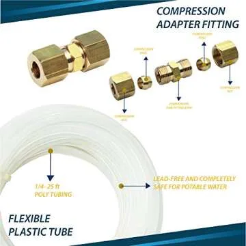 Ice Maker Water Line Kit, Humidifier Installation Kit with ¼” x 25 ft. Poly Tubing, Self-Piercing Saddle Valve, Compression Fittings and Adapters by Greco