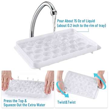 ICEDIVER Ice Cube Tray, Circle Ball Ice Trays for Freezer with Lid & Bin, Sphere Ice Cube Mold Making 66 x 1.0IN Small Round Ice Cubes(2 White Ice Trays, 1 Ice Bucket Scoop & Tong)