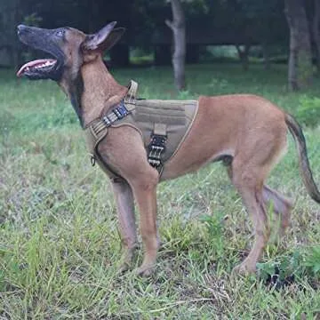 ICEFANG Reflective Tactical Dog Harness with 4X Metal Buckles,for Large Sized Dogs, Heavy Duty MOLLE K9 Vest with Handle,No Pulling Front Clip,Adjustable Pet Harness(L:28"-35",Brown)