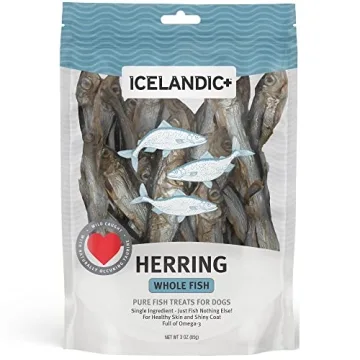 Show moreIntroducing the Icelandic+ Herring Whole Fish Dog Treat, a 3-ounce bag of pure delight sourced sustainably from the pristine waters of Iceland. Crafted with care, this all-natural fish treat offers a safe and enjoyable snacking experience for dogs of all sizes, ensuring that your furry friends can indulge without worry. These herring treats are not only fully digestible, reducing the risk of choking, but they also serve as an excellent dental chew, aiding in plaque and tartar reduction, making every bite a win for their oral health.