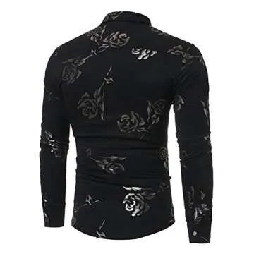 iCham Men's Floral Dress Shirts Gold Rose Printed Slim Fit Long Sleeve Casual Button Down Prom Shirts