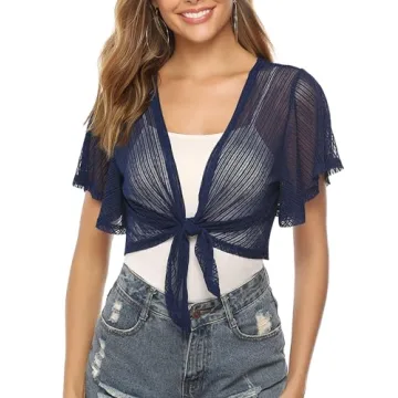 Show moreIntroducing the **iClosam Women Sheer Shrug Tie Front Short Sleeve Cropped Bolero Shrug Cardigan**, the perfect accessory for any wardrobe! This elegantly designed cropped bolero shrug combines style with practicality, featuring a chic tie-front that adds a touch of sophistication to your outfit. Crafted from soft, breathable fabric, it serves as an ideal lightweight cover-up for sleeveless dresses, tank tops, or even your favorite jeans. Whether you're attending a casual brunch or a glamorous evening event, this shrug will transform your look effortlessly.
