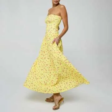 This Y2K-inspired sundress showcases an elegant boat neck and strapless design, featuring a cinched waist that beautifully highlights your figure. The flowy A-line silhouette adds a whimsical charm, turning heads wherever you go. The careful design includes an elasticized tube top that ensures the dress stays in place throughout your activities, offering both comfort and confidence.