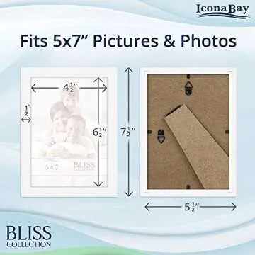 Icona Bay 5x7 White Picture Frame, Modern Style Wood Composite Frame, Table Top or Wall Mount, Bliss Collection