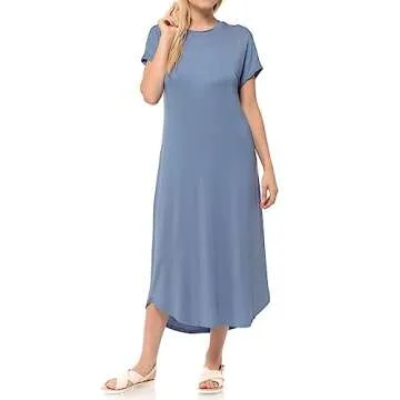 iconic luxe Women's A-Line Short Sleeve Midi Dress Spring Summer Casual Loose Medium Denim