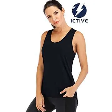 Show moreWelcome to the ultimate combination of style and comfort! Our ICTIVE Yoga Tops for Women offer an effortless blend of sexy allure and functional design. Featuring an open back and a rounded curved hem, this tank top is crafted to keep you cool and chic during your workouts or casual outings. The backless design paired with a scoop neck highlights your silhouette, making it not just a workout essential but a charming fashion choice. Crafted from a fabric that is both super soft and lightweight, this tank top is also moisture-wicking, ensuring you stay comfortable and dry whether you're at the gym or running errands.