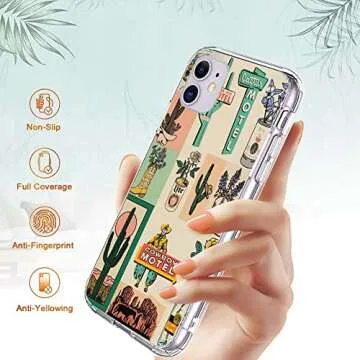 ICWUSA Aesthetic Retro Style Vintage Collage Pattern Protective case for iPhone 11, Trendy Designed Western Cactus Pattern TPU Bumper Shockproof iPhone Case Support Wireless Charging