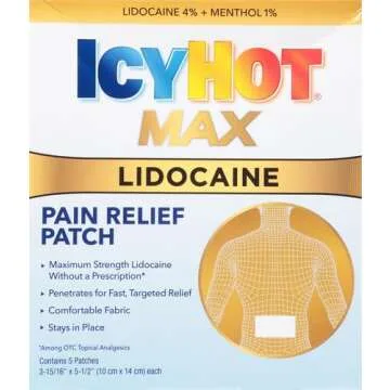 Introducing the Icy Hot Max Strength Lidocaine Plus Menthol Pain Relief Patches, your solution for managing pain effortlessly. Designed for targeted pain relief, these patches feature a unique combination of lidocaine and menthol, offering a dual-action effect that soothes discomfort while you go about your daily activities. Perfect for areas such as the back or any large muscle regions, they are a must-have for anyone seeking fast and effective relief.