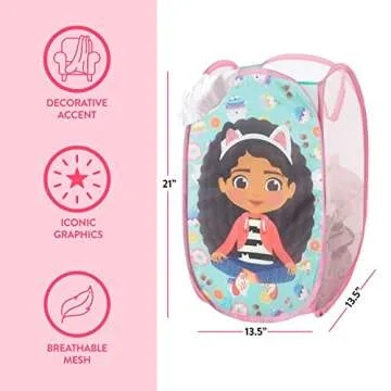 Idea Nuova Gabby's Dollhouse Pop Up Hamper with Durable Carry Handles, 21'' H x 13.5'' W X 13.5'' L