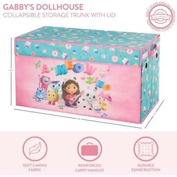 Idea Nuova Gabbys Dollhouse Collapsible Childrens Storage Trunk, Durable with Soft Lid, 28.5"x14.5"x16"