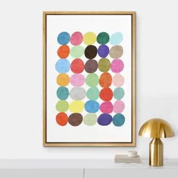 Show more Introducing the IDEA4WALL Framed Canvas Print Wall Art, a stunning piece that brings a vibrant energy to any space. Measuring 24"x36", this masterpiece features high-definition pictures that are impeccably designed for professional-grade framing. The captivating Rainbow Circle Array showcases a delightful blend of geometric shapes and modern art, bringing the essence of mid-century modern aesthetics into your home or office. Available in multiple frame colors, this canvas print can easily complement any decor style, making it a versatile addition to your living room, bedroom, bathroom, dining room, or workspace.