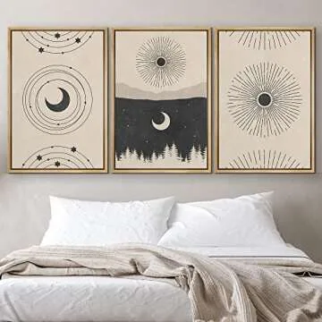 Show moreThe IDEA4WALL Framed Canvas Print Wall Art Set is a stunning tri-panel artwork that beautifully depicts the enchanting celestial interaction between the Crescent Moon and the Shining Sun set against a backdrop of a lush Forest Galaxy. Measuring an impressive 16"x24" per panel, this modern art piece brings a unique blend of artistry and nature into your space, making it a perfect addition to your home or office décor. Crafted with high-quality materials, each canvas is printed in ultra-high definition, ensuring vibrant colors and crisp details that are sure to draw attention. Whether you're looking to enhance your living room, bedroom, or office, this artwork adds a touch of elegance and inspiration, making every glance at it a delightful experience.