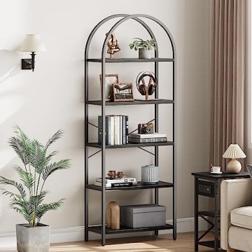 IDEALHOUSE 5-Tier Arched Display Bookshelf - Stylish Black Storage Rack