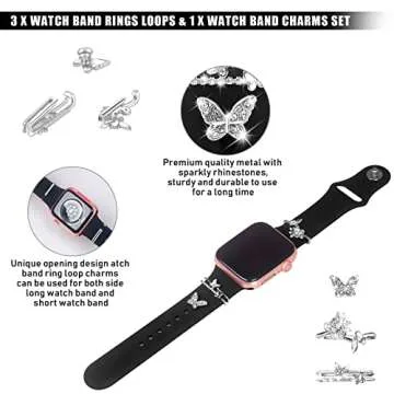 Idealiveny Metal-Decorative-Rings-Loops Compatible for Iwatch 38mm 40mm 42mm 44mm Sparkles Jewelry-Accessories-Charms for Watch Band Series 6/5/4/3/2/1 Bling Watch Band Charm (butterfly set)