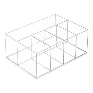 Show moreMeet the iDesign 5 Compartment Plastic Bathroom Storage Organizer from the renowned Clarity Collection, your ultimate solution for organizing and decluttering any space. Measuring a compact 9.88" x 6.88" x 4", this stylish organizer is crafted from durable, BPA-free clear plastic that not only stands the test of time but is also easy to maintain with simple soap and water. The innovative design features five divided compartments that provide ample storage for taller items like makeup brushes, skincare products, lotions, and soaps. With this organizer, transforming your chaotic countertops into a neat and visually appealing display is just a step away!