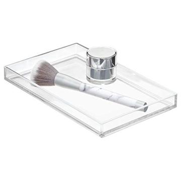 Introducing the **iDesign Bathroom Tray for Towels, Cosmetics and Accessories from The Clarity Collection**, the perfect blend of functionality and style! Measuring 8.68" x 5.34" x 0.95", this compact organizer tray is designed to optimize your counter space while ensuring all your essentials are neatly stored and elegantly displayed. Made from durable, BPA-free clear plastic, it stands up to everyday use and can easily be cleaned with mild soap and water. The transparent sides allow for complete visibility...