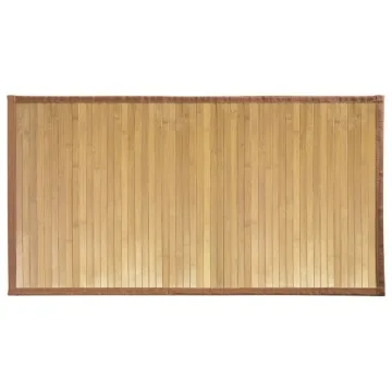 Show more Transform your living space with the elegant iDesign Formbu Bamboo Mat Rug Runner, a versatile and functional addition to your home. Designed with a sleek natural bamboo finish, this rug combines style and practicality, making it not just a decorative piece, but a true centerpiece that enhances any area. Measuring 34" x 21", this rug is perfect for various spaces, including kitchens, bathrooms, entryways, hallways, and mudrooms. With its non-skid underside, it provides a safe, slip-resistant surface that keeps it firmly in place during heavy foot traffic. Plus, its water-resistant coating ensures that spills or moisture won't damage your floors, preserving their beauty and integrity. Overall, this bamboo mat rug significantly elevates your home decor while offering comfort and durability.