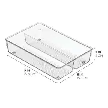 iDesign Linus BPA-Free Plastic Stackable Divided Drawer Organizer Tray - 6" x 9" x 2.25", Clear