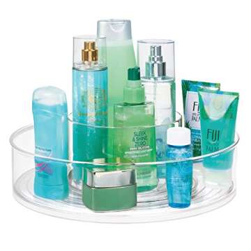 Compared to traditional storage bins, the iDesign turntable stands out with its rotating functionality, allowing users to reach items at the back without rummaging through several containers. Unlike rigid storage shelves, this organizer's compact design fits into tighter spaces, making it more efficient.