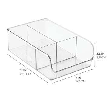 iDesign Linus Plastic Fridge and Freezer Divided Storage Organizer Bin, Container for Food, Drinks, Snacks, Produce Organization, 11" x 7" x 3.5", Clear