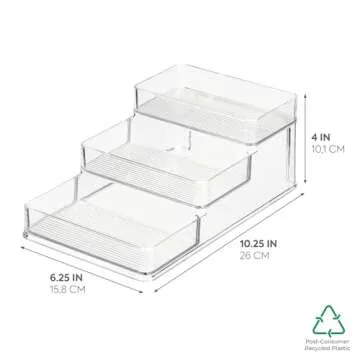 iDesign Recycled Plastic 3-Tier Stadium Spice Rack Organizer for Kitchen, Fridge, Freezer, Pantry and Cabinet Organization, The Linus Collection – 6.25" x 4" x 1.25", Clear