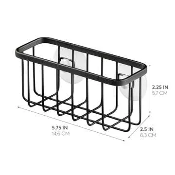 iDesign Rust-Resistant Stainless Steel Sponge Holder for Kitchen Sink with Suction Cups, The Gia Collection - Set of 1, Matte Black