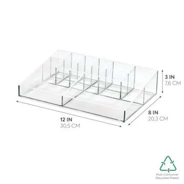 Measuring at a compact size of 12” x 8” x 3”, this durable and BPA-free plastic organizer maximizes your storage capabilities while maintaining a thoughtful design that merges practicality with elegance. With open tops and transparent sides, you'll always have a clear view of your favorite products. The simplicity of maintenance adds to its charm; a handwash is all that's needed to keep it looking pristine.