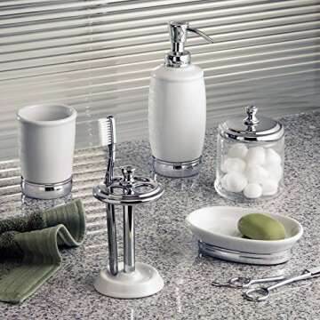 iDesign York Bathroom Vanity Glass Apothecary Jar for Cotton Balls, Swabs, Cosmetic Pads - Clear/Polished Lid,Small