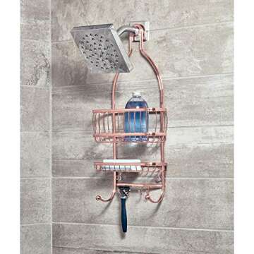 When placed alongside other shower caddies, the iDesign York stands out due to its combination of style, size, and functionality. Many competitors provide basic utility; however, they lack the elegance of the rose gold finish which complements any bathroom aesthetics. Furthermore, while other caddies may not feature integrated hooks, our design includes them, providing users more options for organization. Its robust construction and rust-resistant finish grant it durability that rivals cheaper models that succumb to moisture damage quickly.