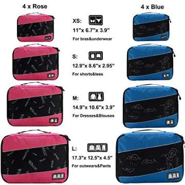 Idesort 8 Set Packing Cubes in Stylish Rose Blue Set for Travel Organization