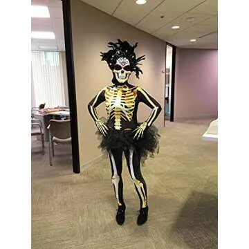 Show more Get ready to make a statement this Halloween with the Idgreatim Girls 3D Gold Skeleton Pattern Zipper Back Long Sleeve Halloween Cosplay Costumes Jumpsuit Bodysuit. Adorned with an eye-catching gold skeleton design, this costume combines creativity with comfort, ensuring that your child stands out during any spooky occasion. The vibrant yellow color adds a playful twist to traditional skeleton themes, making it not only suitable for Halloween but also a great choice for themed parties or dress-up play. Designed for ease, the zipper back allows for quick dressing while ensuring a snug fit that enhances flexibility and movement. Let your girl shine in style and confidence during Halloween preparations!