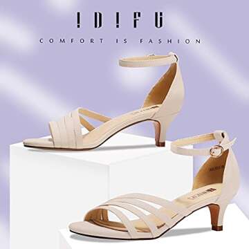 Show more Step into elegance and comfort with these exquisite IDIFU Low Kitten Heel Sandals. Perfectly crafted to blend fashion and functionality, these sandals boast a 2-inch kitten heel that strikes the ideal balance for women who appreciate a bit of height without compromising comfort. Their classic open-toe design is complemented by smooth instep straps, offering an adjustable ankle support that makes slipping in and out a breeze. Available in a variety of sizes from 5 to 11, these sandals cater to every foot shape, ensuring a perfect fit for everyone.