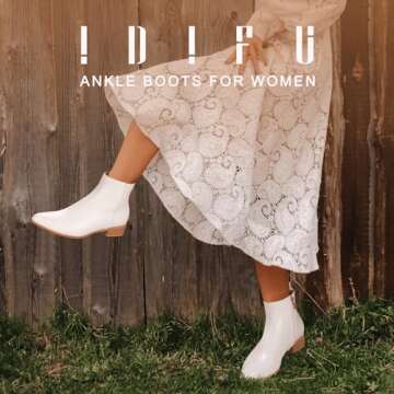 IDIFU Women's Romy Classic Pointed Toe Ankle Boots Side Zipper Low Block Heel Dress Booties(White Pu, 8 M US)