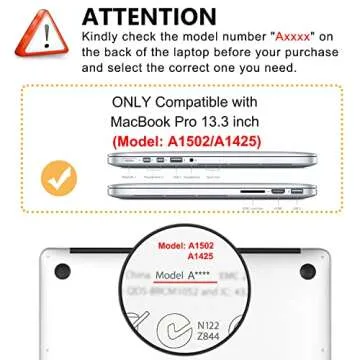 Show more Introducing the perfect blend of functionality and style with the MacBook Pro 13-inch Retina Display Case. This beautifully designed case is crafted specifically for the 2012-2015 models (A1425/A1502), ensuring a snug fit that protects your device without sacrificing elegance. The rubberized, hard plastic material offers exceptional durability, making it ideal for everyday use, whether you are a student or a professional. The no cut-out design allows you to admire your Apple logo while keeping it safe from scratches and dents.