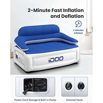 iDOO Inflatable Couch, Blow Up Sofa 3 Seater with Built-in Pump, Camping Inflatable Chair, Portable Air Couch with Backrest, Blow Up Lounger, 3-Min Fast Inflation Deflation, Easy to Storage