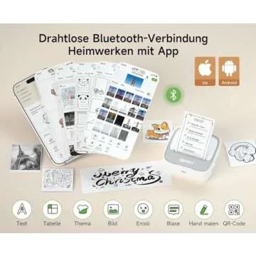 iDPRT Mini Printer with 1 Roll Sticker Paper, Portable Sticker Printer Efficiently and Quickly, Thermal Printer for Study Notes, Pictures, DIY, Label, Free App with Multiple Templates Printer