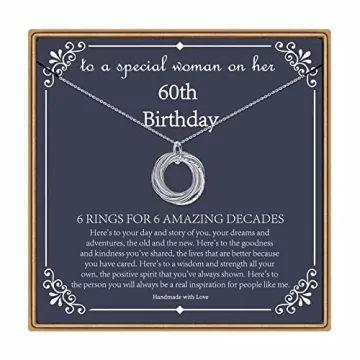 Celebrate the beauty and wisdom of life with the exquisite 60th Birthday Necklace for Women by IEFLIFE. This stunning piece of jewelry features six intricately designed rings, each representing a decade of memories, love, and accomplishments. Handcrafted with care, this necklace not only serves as a thoughtful gift but also as a cherished reminder of the journey one has taken through life. Made from high-quality 925 sterling silver, the chain is both dainty and durable, ensuring it remains ...