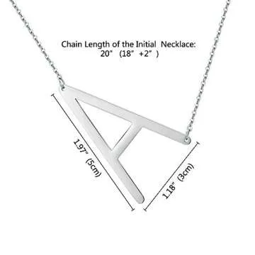 IEFALL Sideways A Initial Necklace - Oversized Silver Plated Jewelry for Women